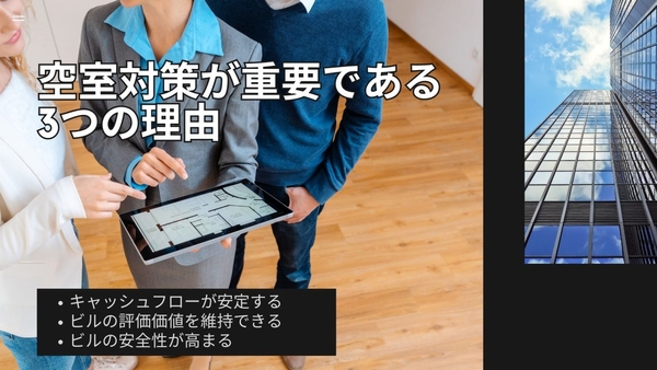 したがって、空室率を低く保つことは、ビルの市場価値を維持し、将来的に売却や再投資を検討する際に有利な条件を作り出すことに繋がります。