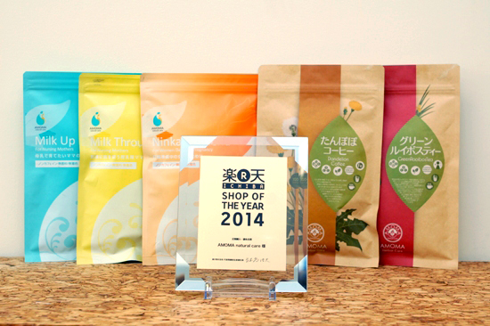 AMOMA natural care(アモーマ ナチュラルケア)は、“産前・産後用のハーブティ”という新たな市場を開拓し、今や不動の地位を獲得しているハーブティ/アロマケアブランドです。その品質の高さと実績から、現在では全国の産院・助産院の約15%にあたる、450院で紹介・配布される他、楽天市場のハーブティカテゴリでは常時1位〜3位を独占しています。2014年3月には「ソーシャルプロダクツ・アワード」にて「ソーシャルプロダクツ賞」、2015年1月には「楽天ショップ・オブ・ザ・イヤー2014」を受賞し、その人気の高さから、様々なメディアに取り上げられています。