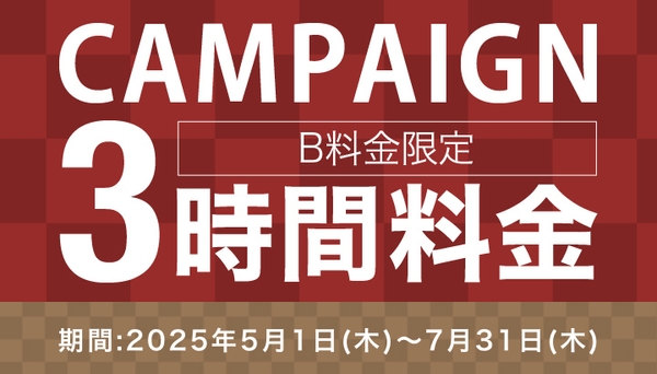 3時間を超えた場合は、基本料金(5時間)の適用となり、それ以降の延長は通常の延長料金となります。