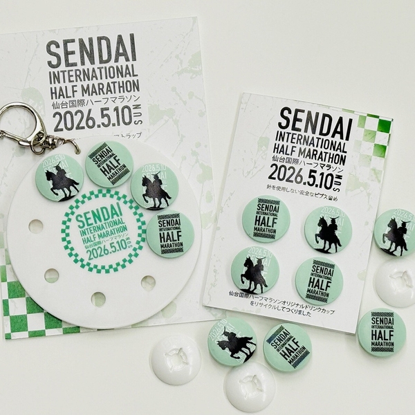 この度、2026年5月10日開催の、2026仙台国際ハーフマラソン公式グッズとしまして、大会オリジナルビブス留めと、収納・持ち運びに便利なビブス留めホルダーを販売します。