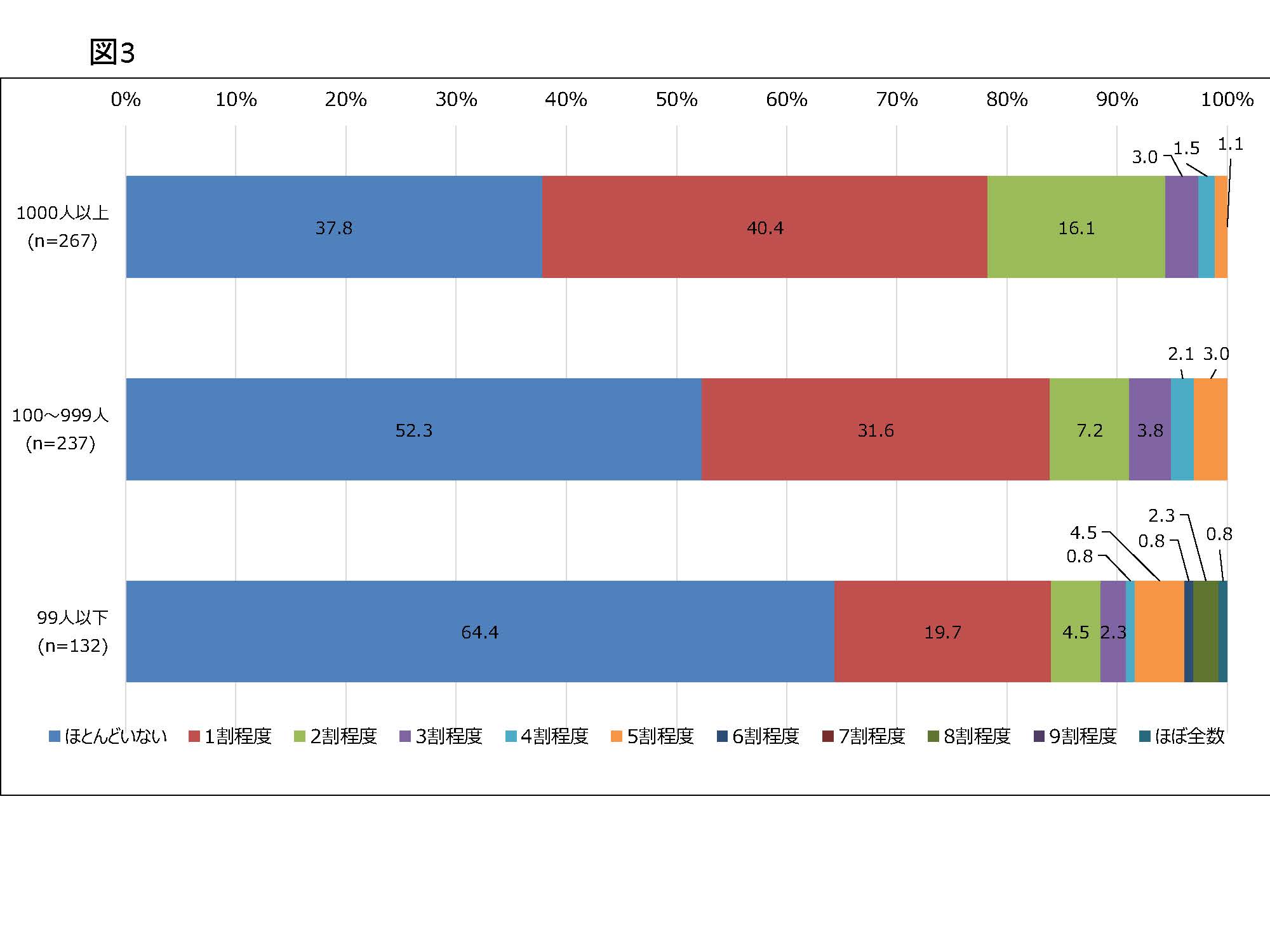 ◆1,000人以上の企業でも「女性役職者がほとんどいない」が3割超