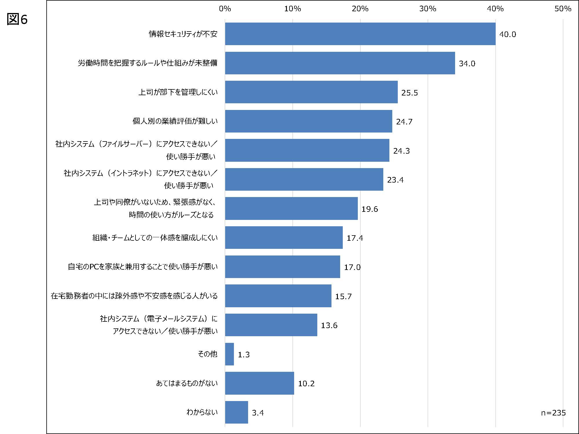 図6 在宅勤務制度・システム導入における課題(複数回答)