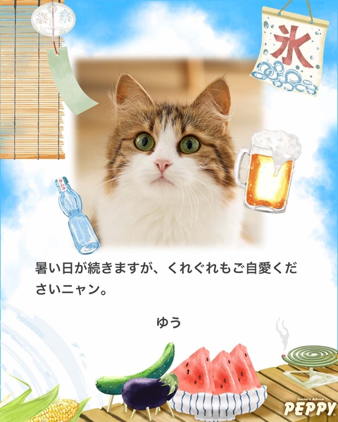 カレンダー事業を柱にペット関連サービス事業などを展開する新日本カレンダー株式会社(大阪府大阪市、代表取締役社長:宮﨑 安弘)は、無料カード作成イベント『うちの子の写真入り 夏のお便りを作ろう!』を犬猫グッズ通販サイト「PEPPY(ペピイ)」にて2024年7月18日(木)~8月14日(水)まで開催いたします。