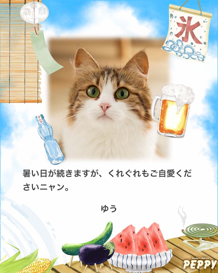 投稿された暑中見舞いカードは、ペピイのホームページで夏の季節にピッタリなデザインの特別なカードとして紹介され、皆様が投稿された挨拶状を閲覧可能。4種類のカード枠から好きなものを選ぶことができます。