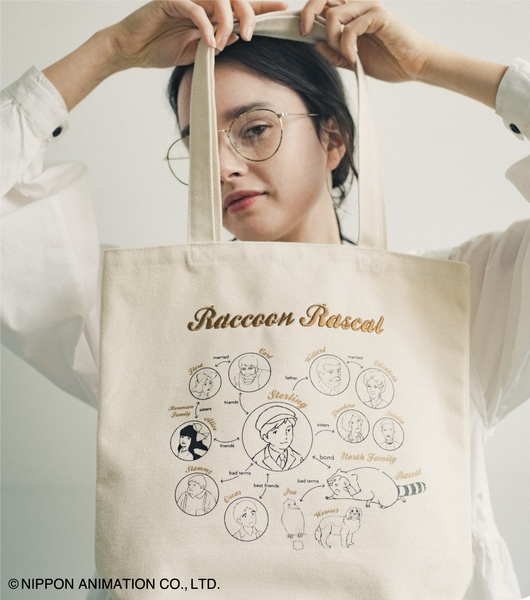 主人公とキャラクターたちの相関図を帆布トートにプリントしました。アニメの設定資料集から選んだレアな線画のアートが、クールなデザインです。タイトルはそれぞれの物語のイメージに合うフォントを選んで刺しゅうしています。デザインは、〈赤毛のアン〉〈あらいぐまラスカル〉〈ロミオの青い空〉の3種類です。