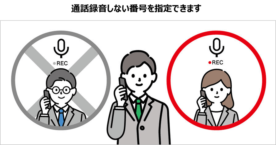 本機能により、通話の録音を行わない番号をあらかじめ設定するだけで、プライバシーに関わる相手先や通話内容が複雑で機微な情報を含む通話をする相手先など、録音トラブルによるリスクを未然に防ぐことができるようになります。
