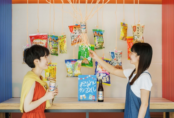 TAMARIBAに、沖縄ならではのチップスをくじ引きで選ぶ「おきなわんチップスくじ」が登場します。ビールのおつまみに相性ピッタリなチップスは、シークワーサー味のポテトチップスやアーサ塩がかかった島どうふチップスなど、沖縄を感じる味わいです。お祭りの千本くじの仕組みで、手前にあるロープを引き、おつまみとなるチップ