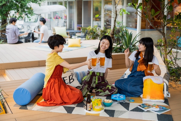 「居酒屋以上 旅未満」の体験を提供する「星野リゾート BEB5(ベブファイブ)沖縄瀬良垣」では、2023 年6月1日~8月31日の期間、沖縄のビールとおつまみを片手に、時間を気にせず楽しめる「24時間よんな~(*)ビアガーデン」を開催します。屋内外がシームレスにつながる空間であるパブリックスペース「TAMARIBA(タマリバ)」でラストオーダーを気にせず24時間ビールを楽しむことができます。ビールのお供には、沖縄ならではのチップスをくじ引きで選ぶ「おきなわんチップスくじ」のほか、缶や瓶ビールでも簡単にきめ細やかな泡が作れるグッズ、仲間と盛り上がれるボードゲームなどを用意。真っ青な空や満天の星、心地よい海風など沖縄の夏の自然を感じながら、好きな時間に好きな場所でビールを楽しめるイベントです。