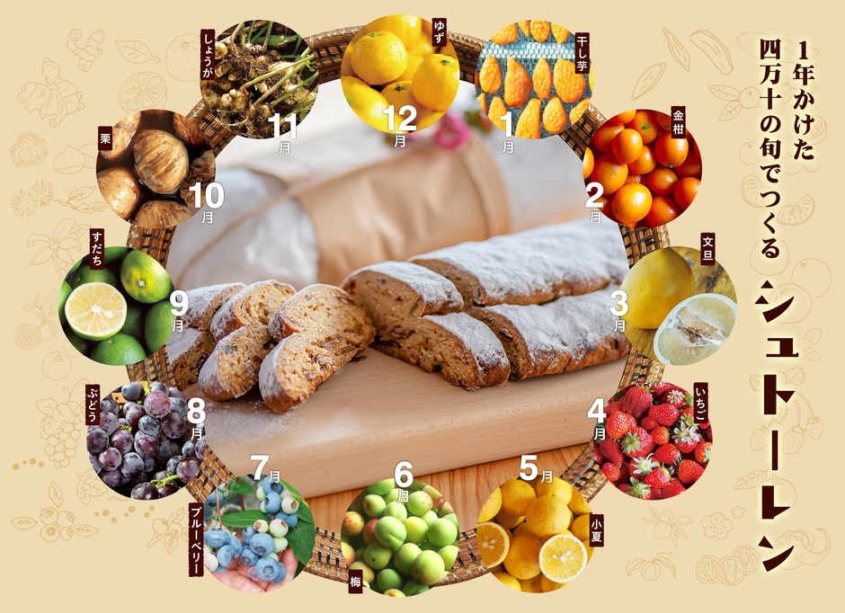 1年かけて素材を集めて作る「1年かけた四万十の旬でつくるシュトーレン」は毎年完売の人気商品。https://www.kagonote.com/p/item-detail/detail/i3.html