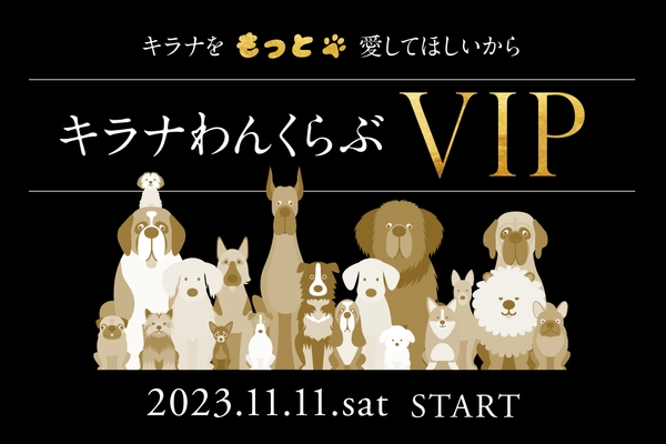 毎月11日の「キラナわんわんデー」開催や、ご来場ごとに獲得できるポイントに応じてプレゼントがもらえる会員制度「キラナわんくらぶ」など、キラナガーデン豊洲はドッグフレンドリーな施設を目指して取り組んでまいりました。その取り組みの一環として、この度「キラナわんくらぶ」に“VIP会員”を新設いたします。年間の獲得ポイント数が20ポイントを超えるわんちゃんを対象に、キラナオリジナルグッズやプレゼントチケット、併設するドッグランを無料で使用できるドッグランパスポートを贈呈。まさに“VIP”なサービスを受けることができる会員制度です。VIP会員のお申込みは、11月11日(土)に開催される「キラナスペシャルわんわんデー」にて初回受付を行います。キラナを一緒に盛り上げていただいているわんちゃん、飼い主様はぜひこの機会にお申込みください。