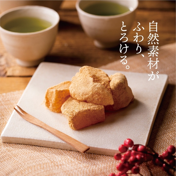 この独特の食感は、わらび粉の特徴と製造過程に秘密があります。食感を決めるのは練り加減です。これは職人の経験と技が光る重要な工程です。練り不足だと固くなってしまい、逆に練りすぎると弾力を失ってしまいます。この絶妙なバランスを見極めるには、長年の経験と繊細な感覚が必要不可欠です。弊社では、熟練の職人たちが幾度もの試行錯誤と改良を重ね、理想的な練り加減を追求してきました。その結果、本物の「生わらび餅」が持つべき、なめらかでとろけるような食感を完璧に再現した「とろ~り生わらび餅」を完成させることができました。この独特の食感は、口に入れた瞬間から舌の上でゆっくりと溶けていく、まさに至福の味わいを生み出しています。