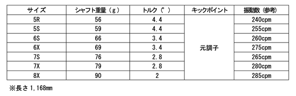本製品は、手元側をしなりやすくし粘り感を追求するとともに、しなり戻りの再現性に優れており、安定した方向性を求める中上級者向けのカーボンシャフトです。