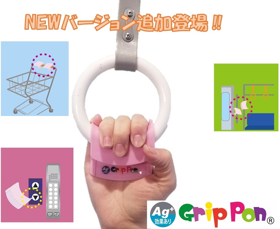 つり革用携帯グリップ「GripPon」にNEWバージョンが追加され発売中!多種多様な場面で抗菌対策のできるNewGripPonを是非お手に取ってお試しください。