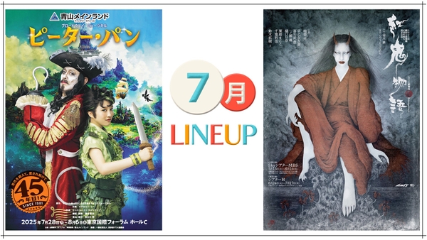 7月には、劇団☆新感線45周年興行の第一弾となる、初夏公演 いのうえ歌舞伎【譚】Retrospective『紅鬼物語』(大井競馬場前)、同じく日本での上演45年目を迎えるブロードウェイミュージカル 『ピーター・パン』(有楽町)など、関東近郊で開催される多様なジャンルの舞台公演が予定されています。