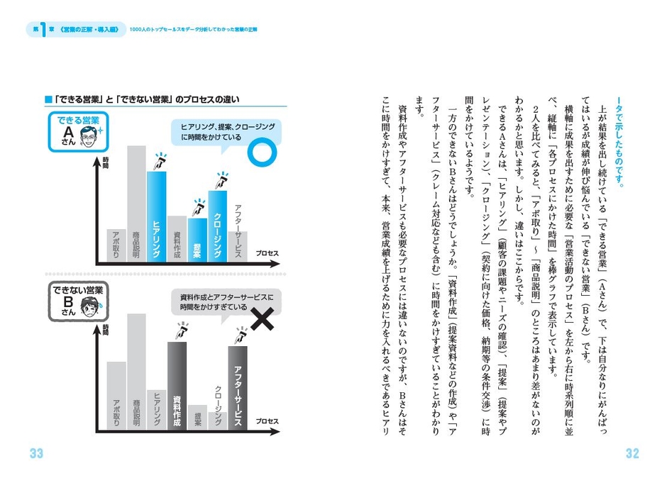 本書は、 営業の正解をまとめた本です。「できる営業」と「できない営業」 のよくあるパターンを対比させながら、営業の悩みに答える形で正解を導き出します。