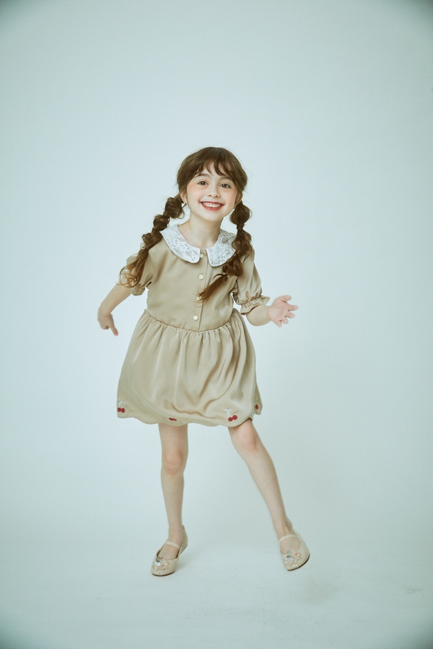 『レース丸襟デザインさくらんぼ刺繍スカラップワンピース』