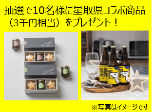 ※応募者から抽選で10名様に星取県コラボ商品(3千円相当)をプレゼントします。