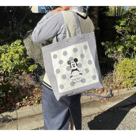 大人のコーディネートにもマッチ。キャラクターバッグではありますが、ディズニーのシンプルなラインなので”幼くなりすぎない”のも、このトートバッグの良いところです。