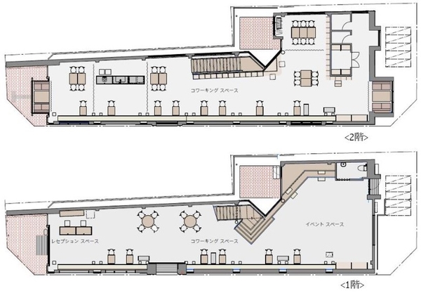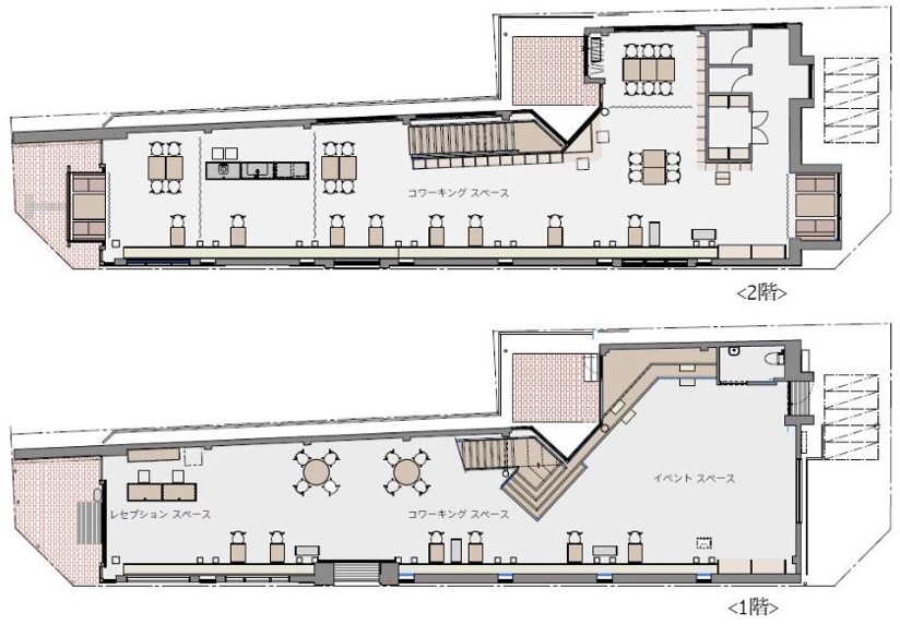1・2階とも全席可動式の机と椅子を配置したオープンスペースで、多様な利用目的に対応できる空間となっています。スタッフが不在となる時間もあるため、死角をなくし、打合せスペースには透過性のあるビニールカーテンを設置しました。また、1階にはバリアフリートイレがあり、利用者が安心して使える施設となっています。