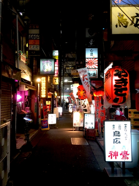 一方の駅西側(烏森口、日比谷口)はというと、時代に取り残されたかのように昭和四十年代の面影が残り、ガード下・路地・地下街には安上がりな飲食店や飲み屋が密集している。