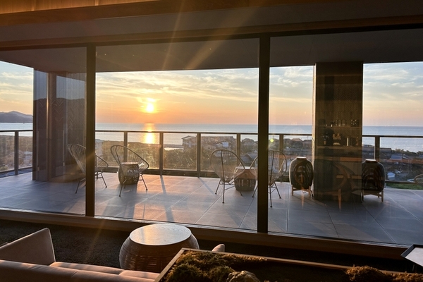 大人のための上質な時を刻む「佳松苑 別邸ふうか」は、ワンフロア3室・全18室の温泉展望風呂付き客室からなる大人宿。海と夕日の「ラウンジテラス碧-AO-」や、演出と旬食材が織り成す豊かな創作料理でゲストの旅を彩ります。