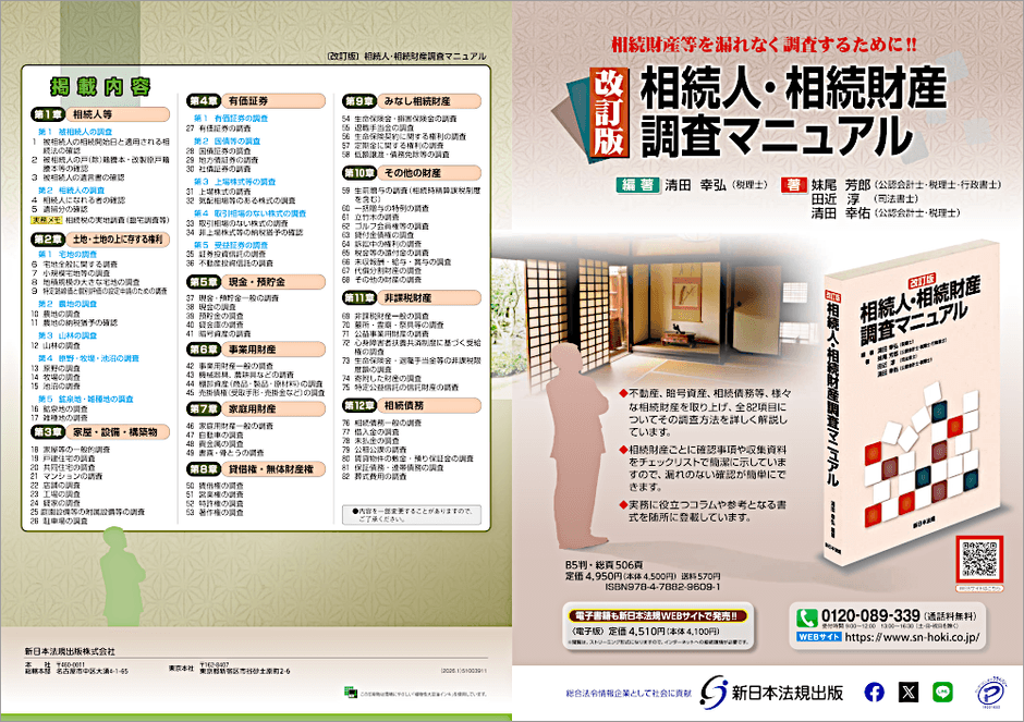 新日本法規出版株式会社(所在地:愛知県名古屋市中区、代表取締役社長:河合誠一郎)は、新刊『〔改訂版〕相続人・相続財産調査マニュアル』を2026年2月10日(火)に発売いたしました!