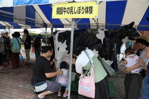 模擬牛による乳しぼり体験