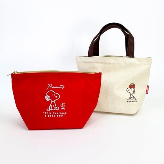 トートバッグにジャストサイズのポーチが付いた、スヌーピーの新アイテムです。
