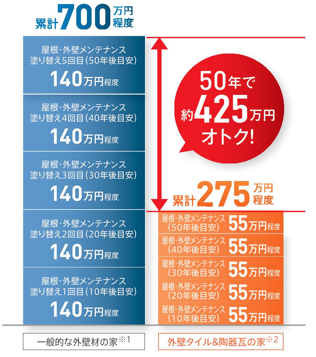 <メンテナンス費用は一般的な外壁材の半分以下>