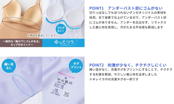 肌へのやさしさを考えたカップ付き完全無縫製インナー「ゆったリラ」