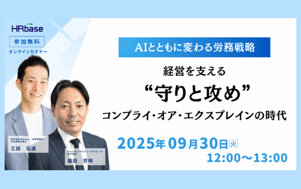 みらいコンサルティンググループ(本社:東京都中央区、代表:久保 光雄 岡⽥ 烈司)は、2025年9月30日にセミナー『AIとともに変わる労務戦略 経営を支える“守りと攻め”とコンプライ・オア・エクスプレインの時代』をWEBにて開催します。