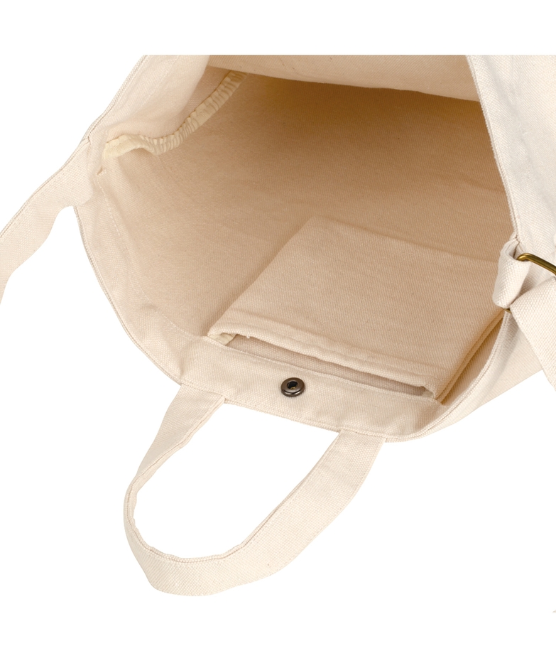 持ち手とショルダーストラップが付いており、ショルダーストラップは長さの調節が可能。手持ち、斜め掛け、ショルダーの3WAYで使い分け。