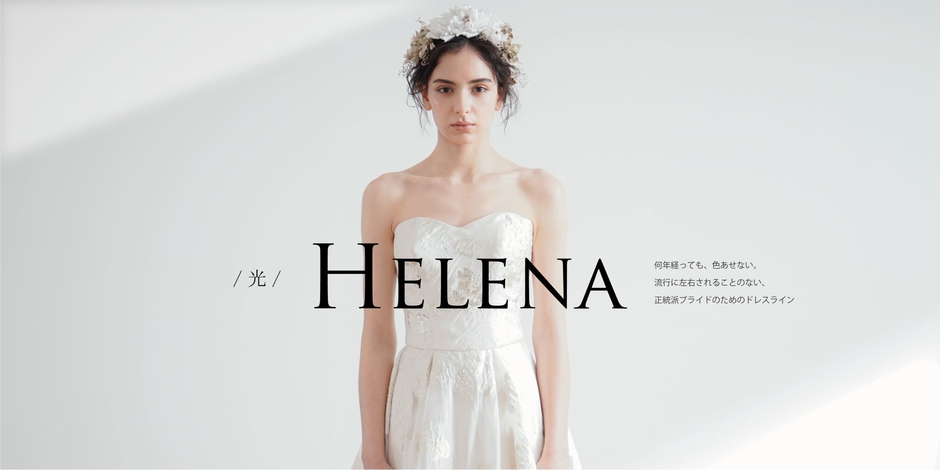 自然と調和することを大切にしており、海や緑、花畑などを舞台にしたロケーション撮影との相性がよいのが特徴。透け感のあるやわらかな素材が、風さえも味方にしてくれる。花嫁さまの、人生で最も美しい日を彩ります。