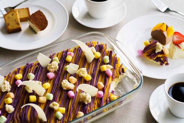 リゾナーレ小浜島を含む星野リゾート6施設では、2021年2月1日より、お土産の消費減少により、在庫過多になっていた紅芋を使用したオリジナルスイーツ「紅芋と茜芋のトライフル」の提供を開始しました。生芋は植物検疫で沖縄から本土への持ち込みが禁止されているため、沖縄を代表する農作物である紅芋と茜芋も、例年の4倍を上回る200トンの在庫があり、それらを使用したスイーツです。