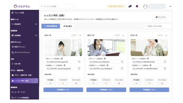 アップデートにより、サロン・面談予約とレッスン予約の2つの予約機能が搭載されました。