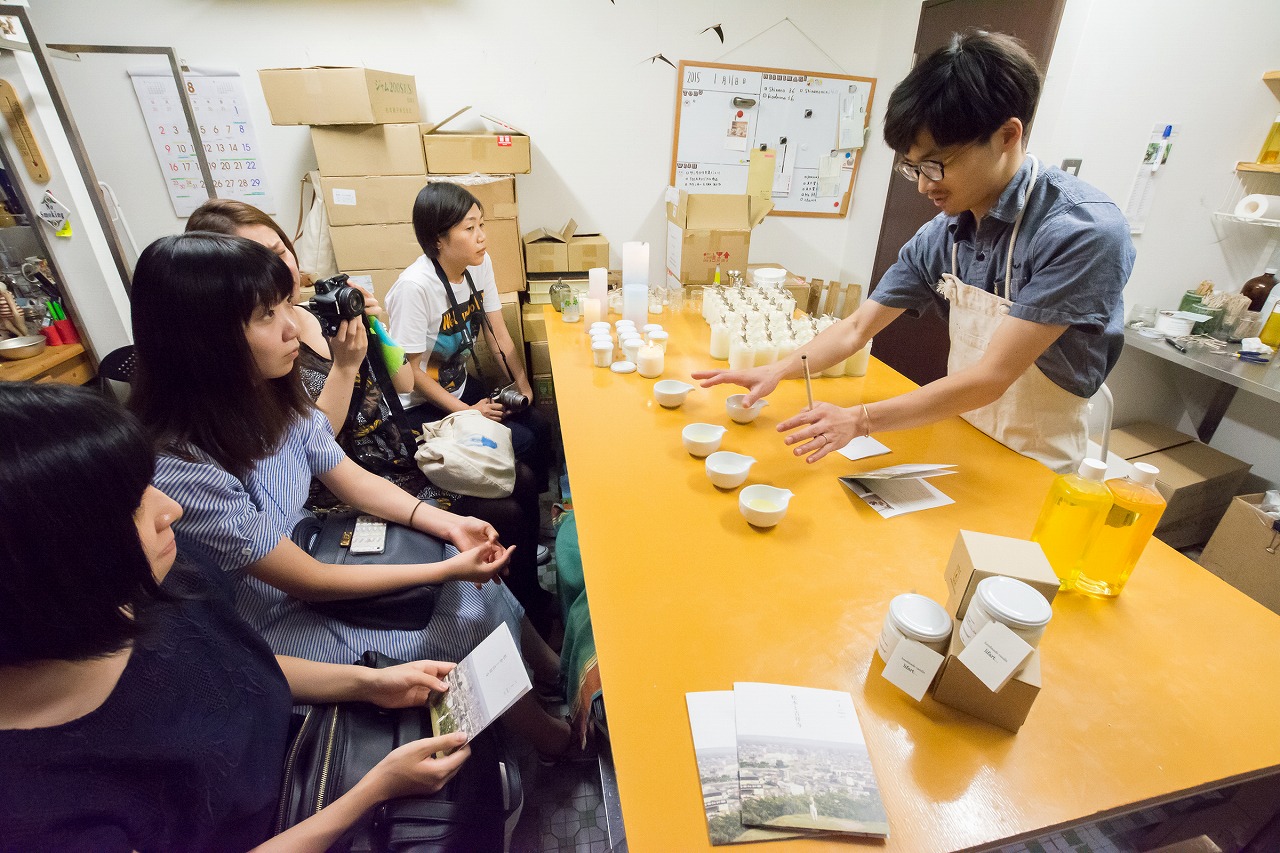体験ツアーの様子(TOCA by lifart...)4人が参加し、鹿肉の缶詰やシルクソープ、フレグランスキャンドルの作り手をたずね、商品が生まれる環境を体感し、商品作りに至る背景などを聞きました。