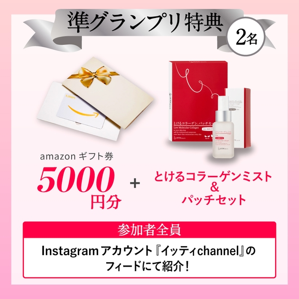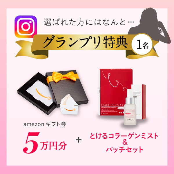 本製品を使用した動画や写真を撮り、Instagramで指定のハッシュタグをつけて投稿するだけで簡単にご応募いただけます。また、ご投稿いただいた方の中からグランプリを選ばせていただきます。当選された方は、Amazonギフト券ととけるコラーゲン(※)パッチ&ミストをプレゼントいたします。本キャンペーンは参加者全員特典でとけるコラーゲンパッチ(※)&ミストが半額で購入できますので、たくさんのご応募お待ちしております。