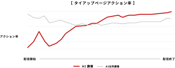 ブースト開始後、BBXから誘導した際のアクション率が徐々に上昇。最終的にBBX以外のアクション率を上回る結果となった。
