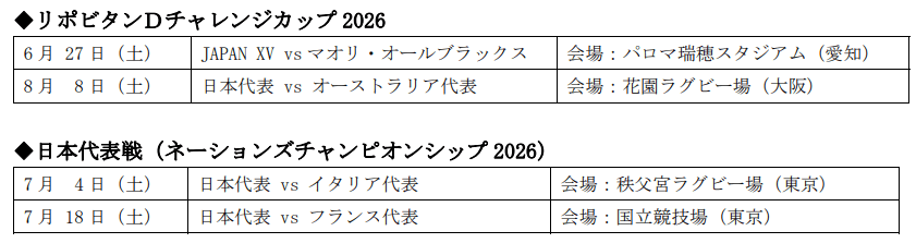 大正製薬株式会社[本社:東京都豊島区 社長:上原 茂](以下、当社)は、公益財団法人日本ラグビーフットボール協会が主催するラグビー日本代表戦2試合について、冠スポンサーとして特別協賛し、「リポビタンDチャレンジカップ2026」として開催することが決定いたしました。