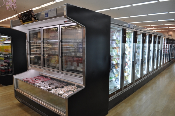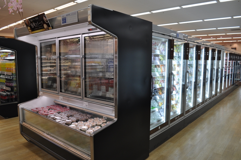 通路2本分の冷凍食品コーナーでは、毎日の食卓をサポートする商品のほか、まとめ買いニーズに対応し大容量商品もご用意いたします。