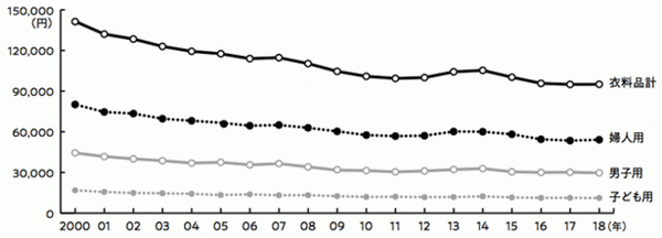 消費者の購入単価は年々減少傾向にあり、コストを抑えファッションを楽しむ人が年々増加している。