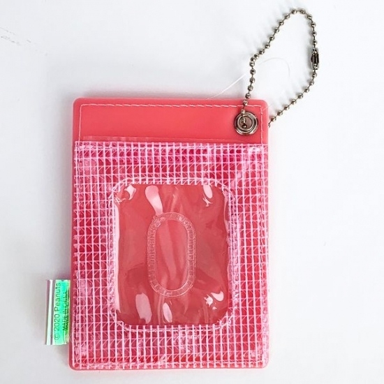 パスケース部分です。こちらもPVCのメッシュ素材になっています。中央はクリアになっているので、文字もちゃんと確認できますね。