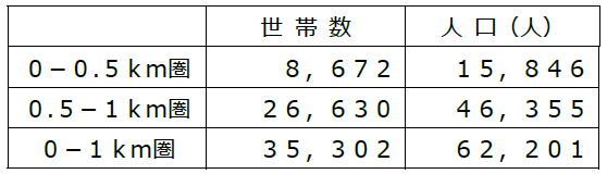 ・店舗から1㎞圏内は単身世帯比率が59.8%、2人世帯比率が19.8%と全体の8割が少人数世帯です。