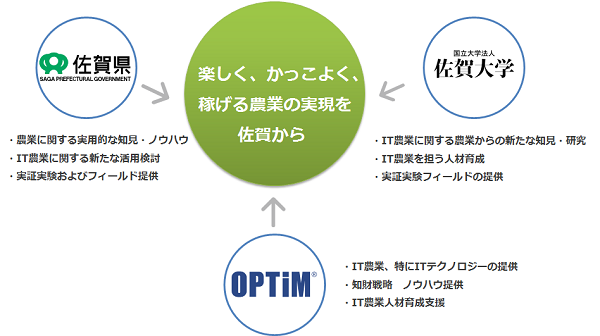 佐賀大学農学部、佐賀県生産振興部、オプティムが IT農業における三者連携協定を締結 「楽しく、かっこよく、稼げる農業」の実現を佐賀から行うべく、 IT農業における世界No.1を目指した取り組みを実施