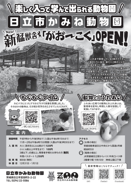 太平洋を臨む小高い丘にあり、野生に近い飼育環境での展示や動物とのふれあいイベントなどにも定評がある茨城県内唯一の動物園「日立市かみね動物園」。
