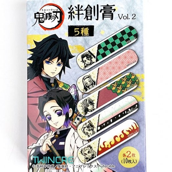 別デザインの絆創膏も♪炭治郎・禰豆子に加えて煉獄・富岡・胡蝶のデザインが2枚ずつ入っています。