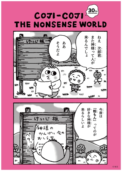 アニバーサリーを記念して開催する「COJI-COJI THE NONSENSE WORLD」は、コジコジの世界に入り込む体験型の展示イベントです。2024年に開催した東京会場は連日超満員! 4月26日(土)からスタートする大阪会場では、東京会場で大好評だったコジコジのグリーティングを開催するほか、新たな展示内容の追加や新商品の発売も予定しており、さらにパワーアップした状態で皆様をお迎えします。