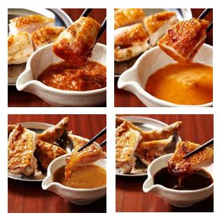 まず、「とりやき」の半数以上のメニューにハーフサイズを新たにラインナップ。おひとり様はもちろん、女性や少人数でご利用のお客様の“ちょこっとつまみたい”、“いろんな種類を少しずつ味わいたい”というニーズに対応します。また、タレのバリエーションを4種類に増やし(既存店は2種類)、さまざまなタレにつけて食べるスタイルにすることでお客様の気分やお好みのドリンクに合わせて、味の変化を楽しめるように工夫しました。その他、豚肉ホルモンを使った「焼きトン」(180円~)を新たに投入し、つまみや一品料理(180円~)から食事メニュー(280円~)まで全60品以上ものメニューを提供いたします。