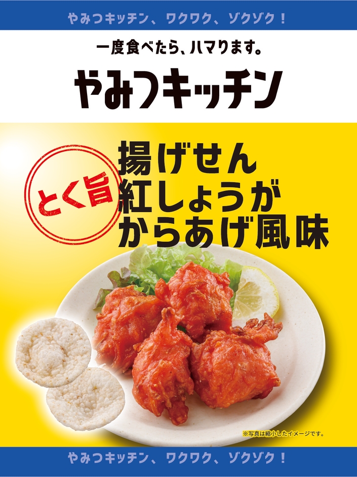 国産米を100%使用した生地をサクッと軽くくちどけの良いおせんべいに仕上げました。ミニストップの「紅生姜唐揚げ」のように紅しょうがが効いたやみつきな逸品です。
