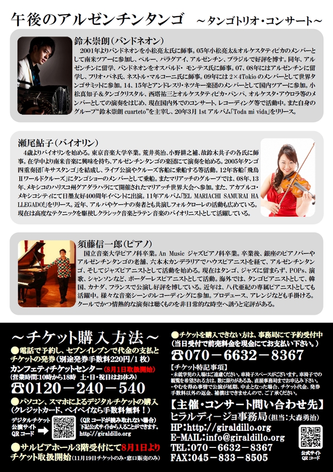 ヒラルディージョ『午後のアルゼンチンタンゴ ~タンゴトリオ・コンサート~』